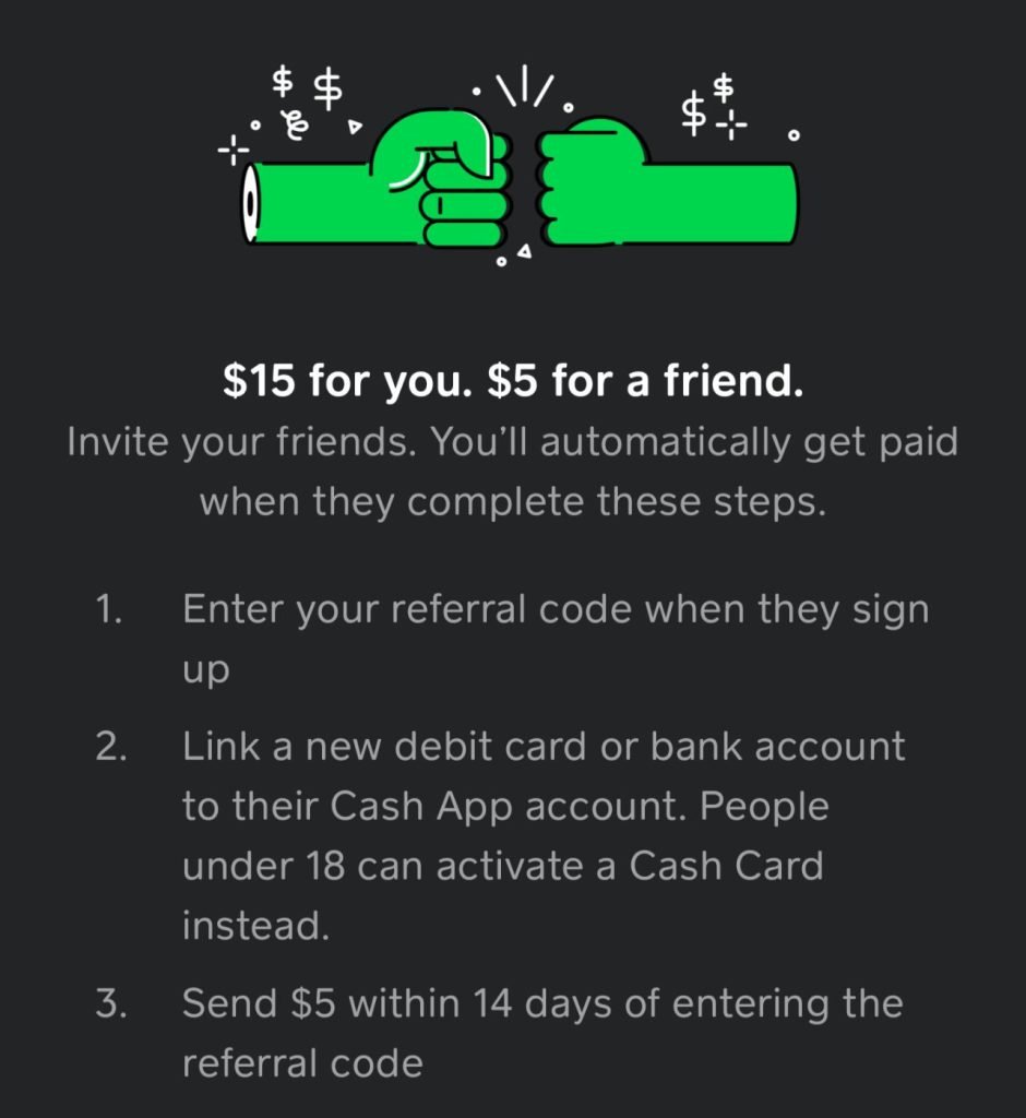 For example, at the time of writing, if you invite a friend to Cash App and they send their first $5, both you and your friend will receive a $5 bonus. This program is subject to change, so always check the terms and conditions.