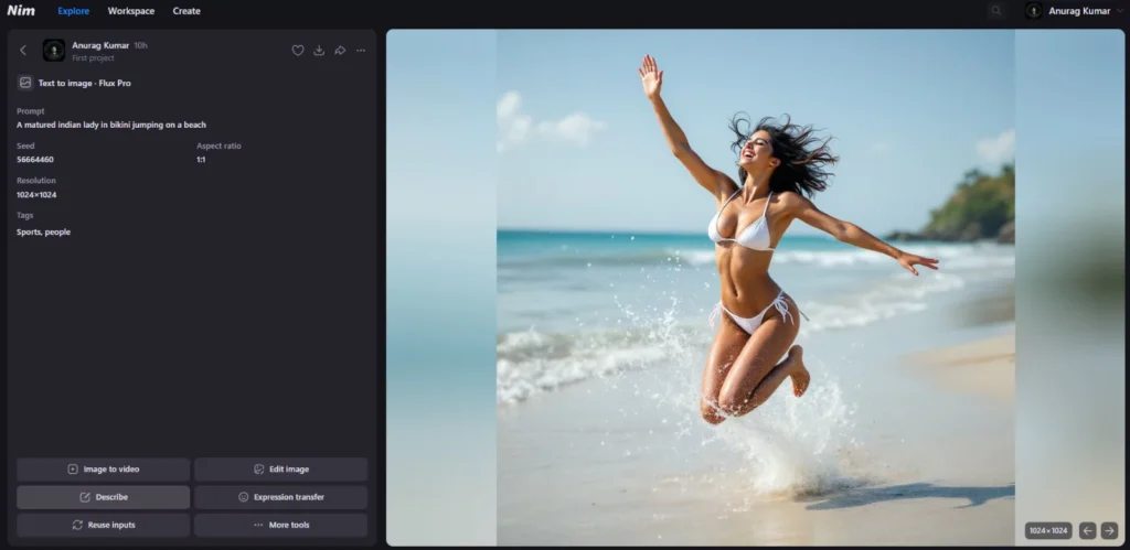 - Enter your Prompt. Example: A matured indian lady in bikini jumping on a beach.