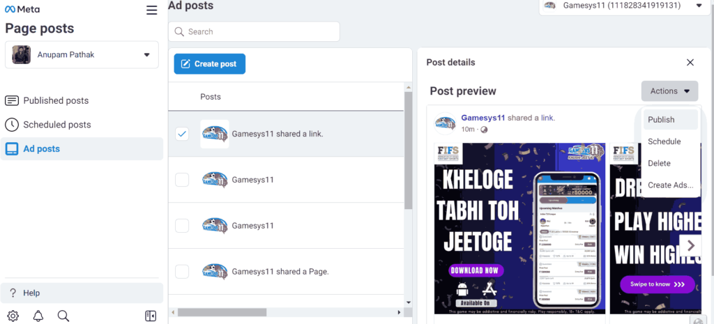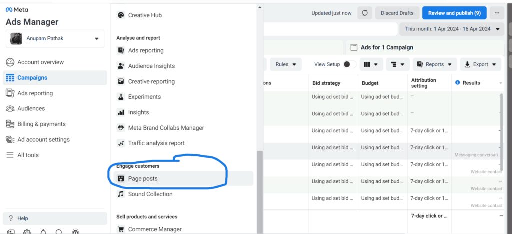 - Scroll down and choose Page Posts. This section allows you to manage and view all your page’s posts, including ads and organic posts.