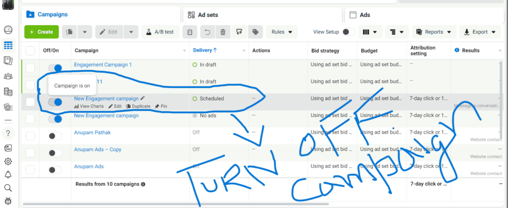 - Remember to switch off the campaign after the scheduled time to ensure you are not charged