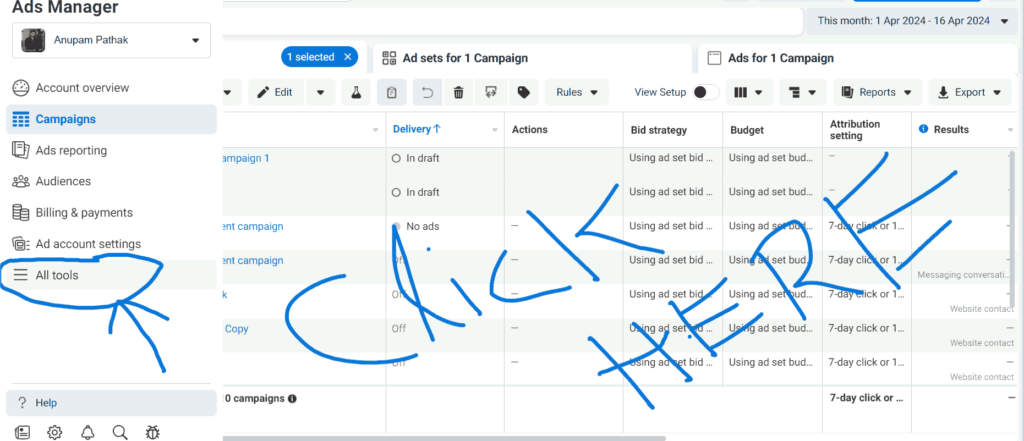 - At the Ad Set level, click on Messaging Apps within the Conversation column.
